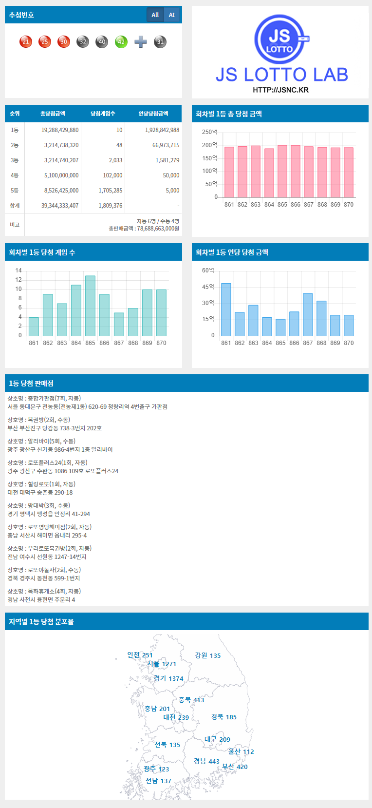 870회차 추첨번호 정보 전달 드립니다.