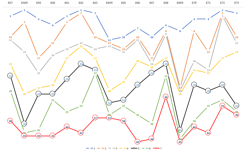 위의 차트가 지난 873회차까지의 결과입니다만 볼 때마다 새롭군요..^^;;