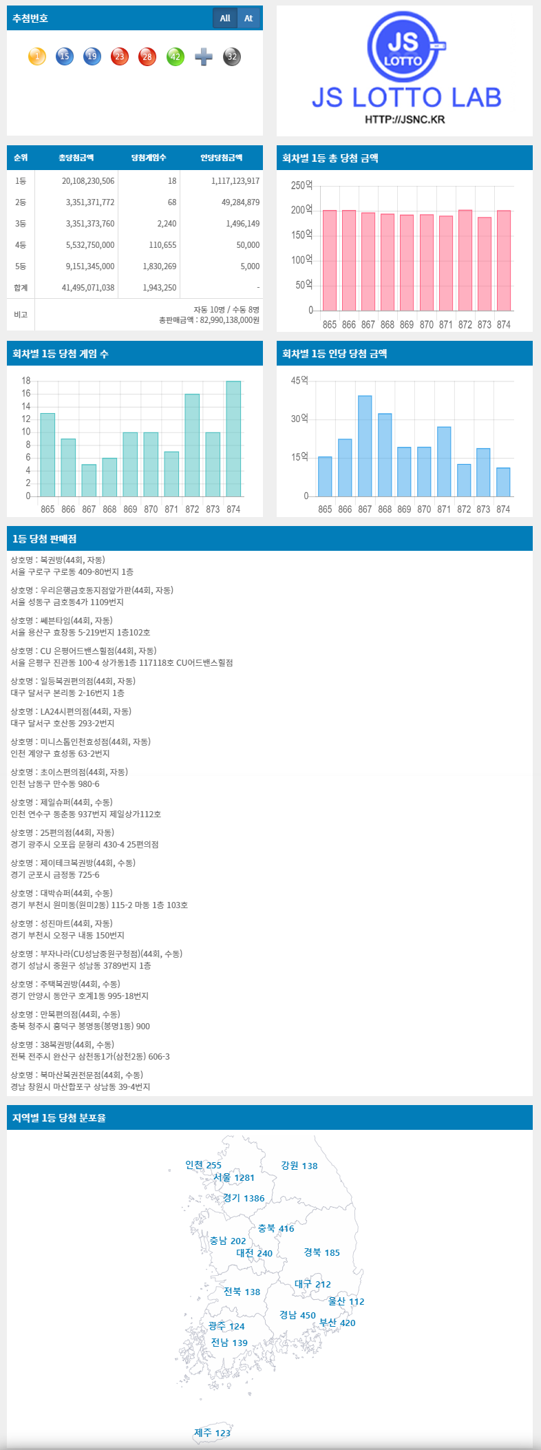 874회차 추첨번호 정보 전달 드립니다.