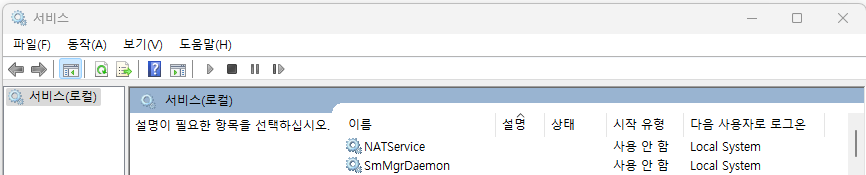 해당 서비스인 NATService, SmMgrDeamon을 찾아