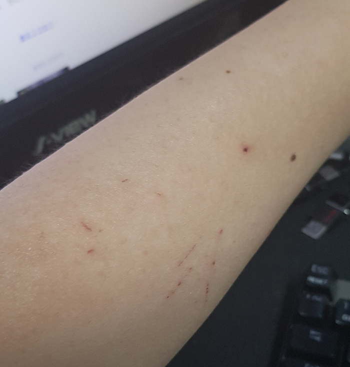 알고 있었던 부분은 고양이들은 굉장히 물을 싫어한다. 쉽지 않은 작업이 될 것이다. 는 예감을 하였다. 그리고 현실로 돌아오다. 어깨는 물론, 가슴과 팔에 어마어마하게 스크래치가 났다. 또한 몇 년 동안 못 봤던 피도 보게 되었다.