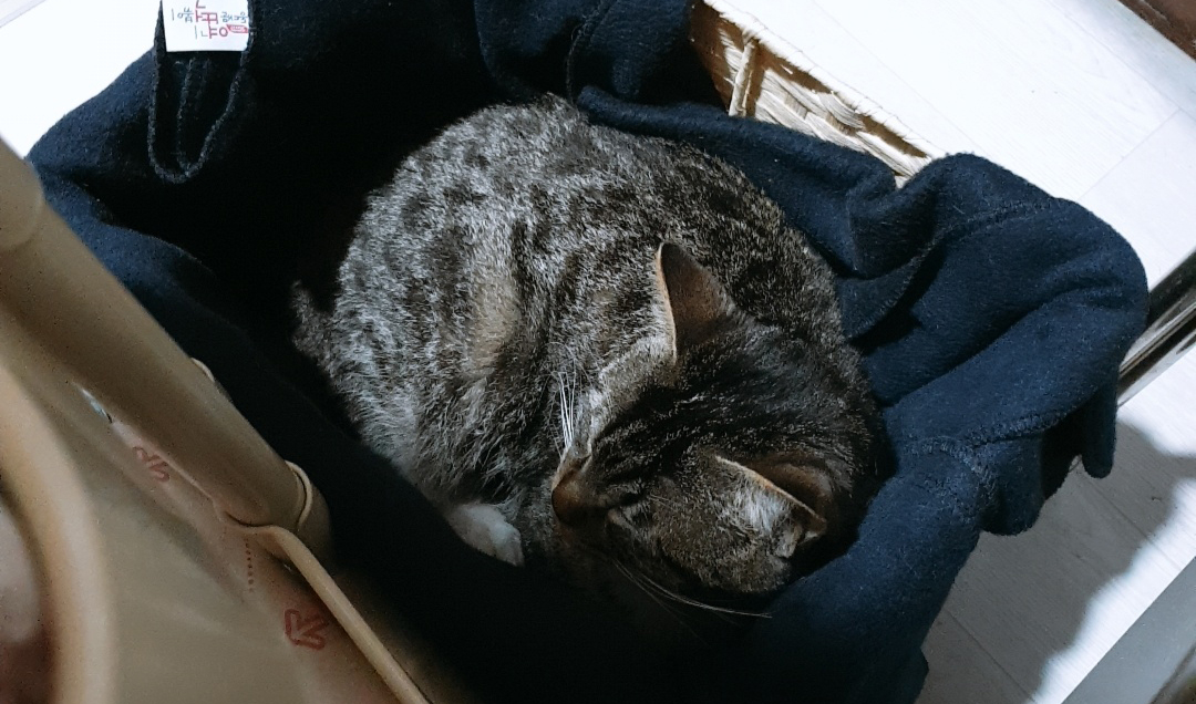 옆에 있던 의자로 올라오더니 성큼성큼 내 무릎 위로 올라와서 앉아있다가 책상 밑 발 받침대에 자리 잡고 또 잠이 든다.
