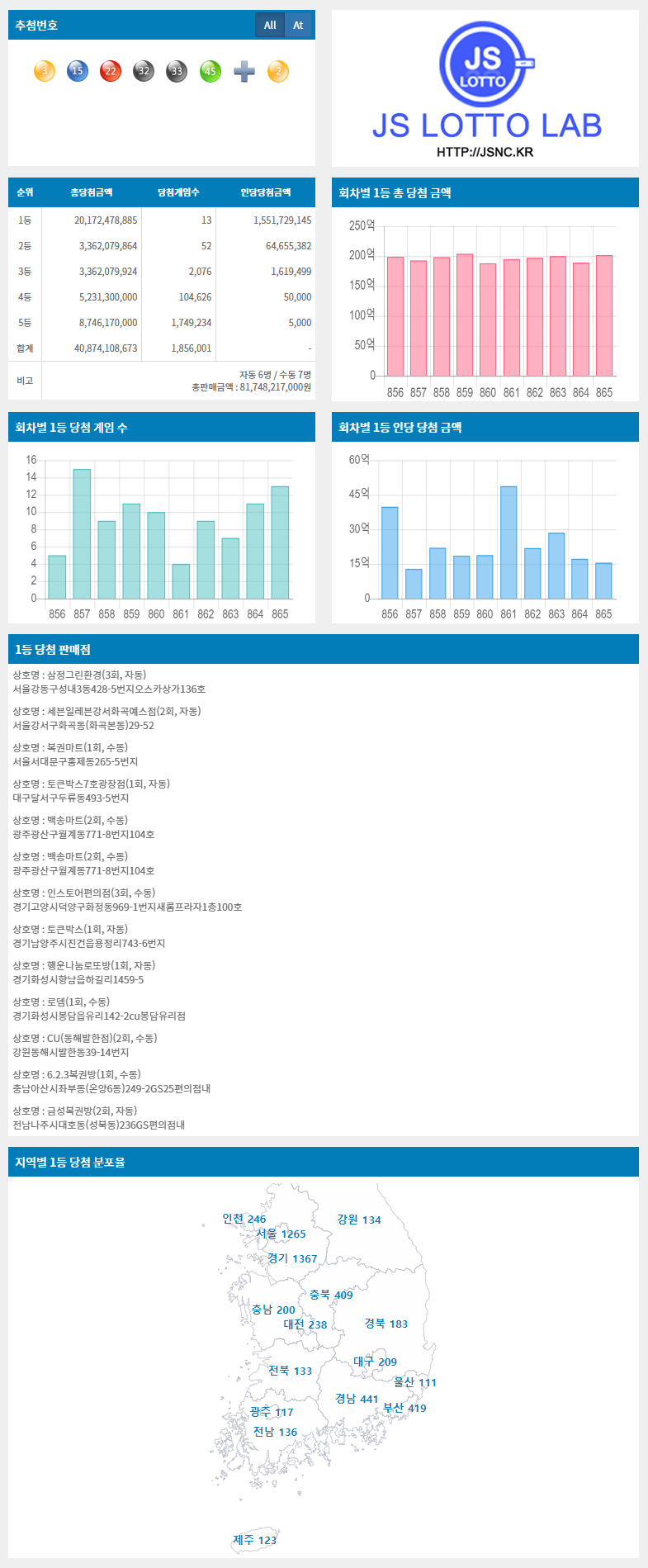 안녕하세요. 865회차 추첨번호 결과 정보를 전달하러 왔습니다.