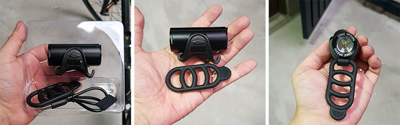 후미등이 있고 리모콘과 충전 케이블, 거치대등이 들어있습니다.