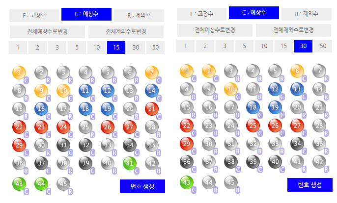 - 제외 15수 : 01, 03, 05, 07, 09, 14, 19, 23, 26, 27, 29, 30, 31, 35, 41