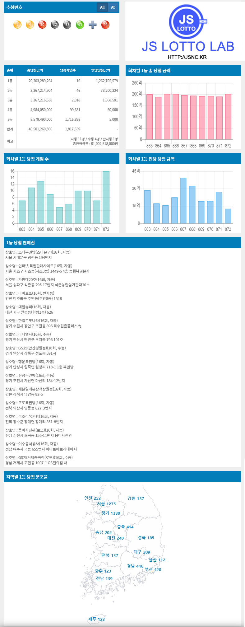 [JS로또랩] 872 추첨번호 정보